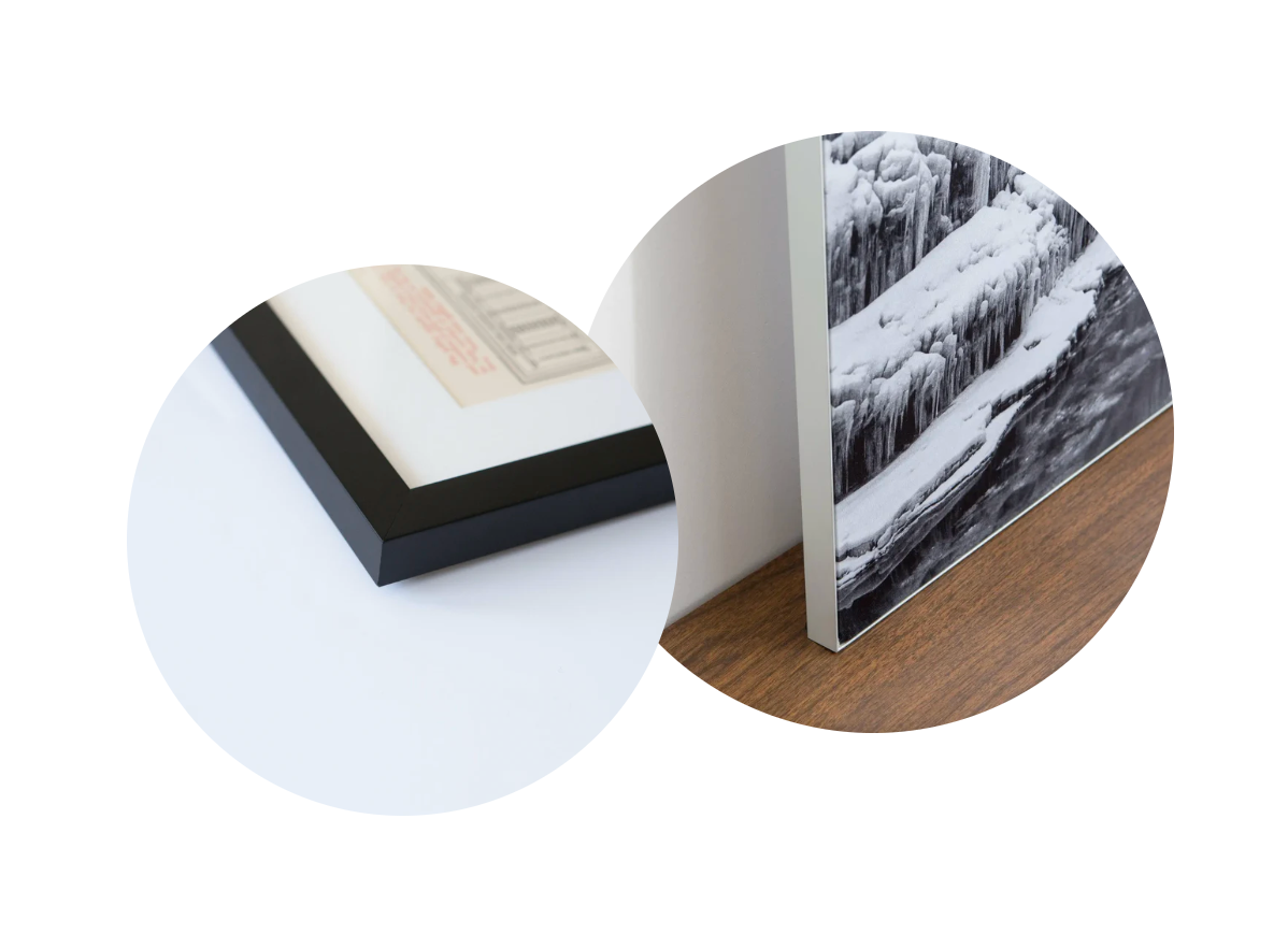 Any of our products, framed and ready to hang, shipped to your door! Stylish wooden frame and large-size Infinity Frame options.