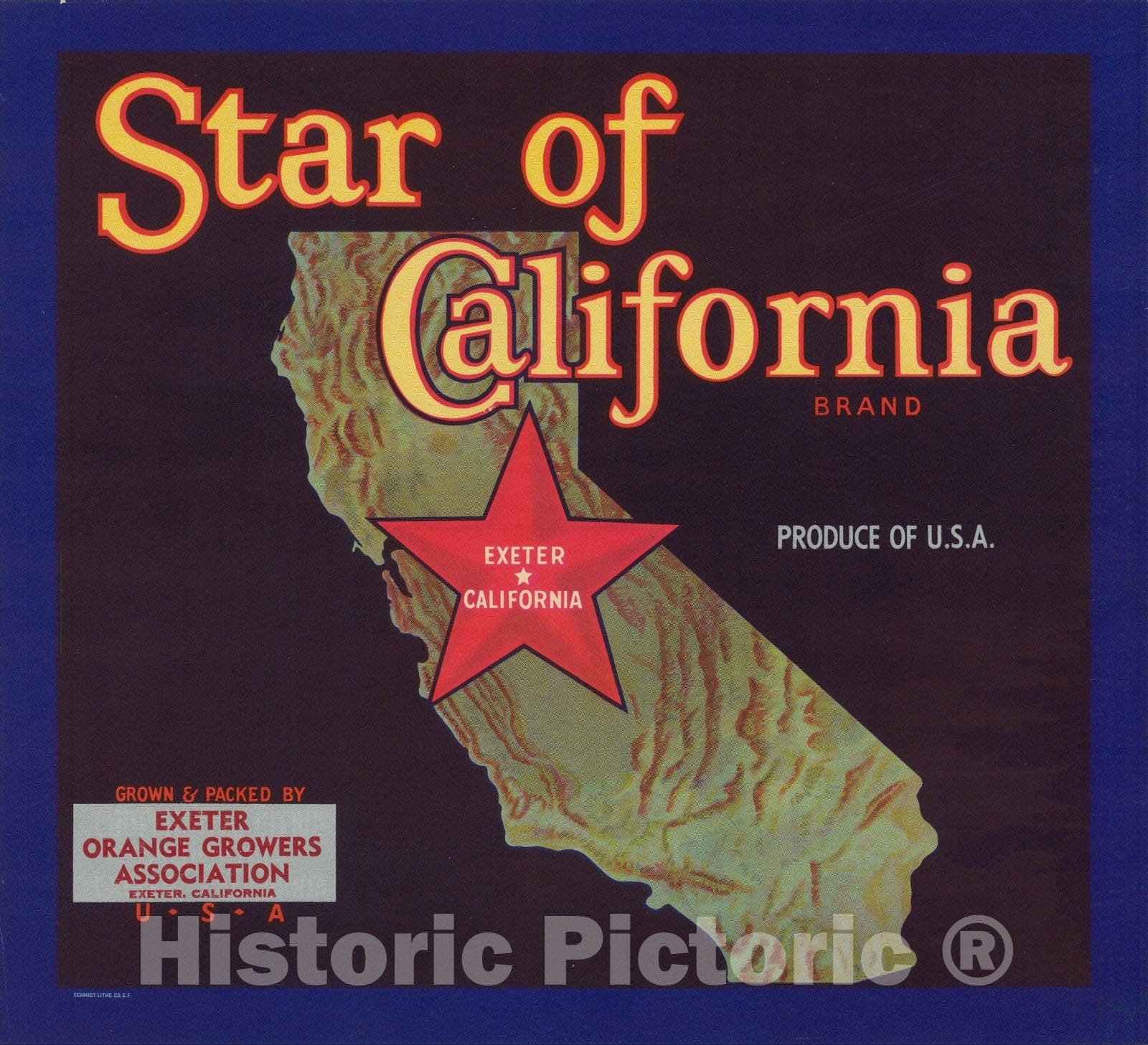 • .Historic Map : [Fruit Crate Label Advertising Map] Star of California Brand, 1912, Schmidt Label & Litho. Co., Vintage Wall Art