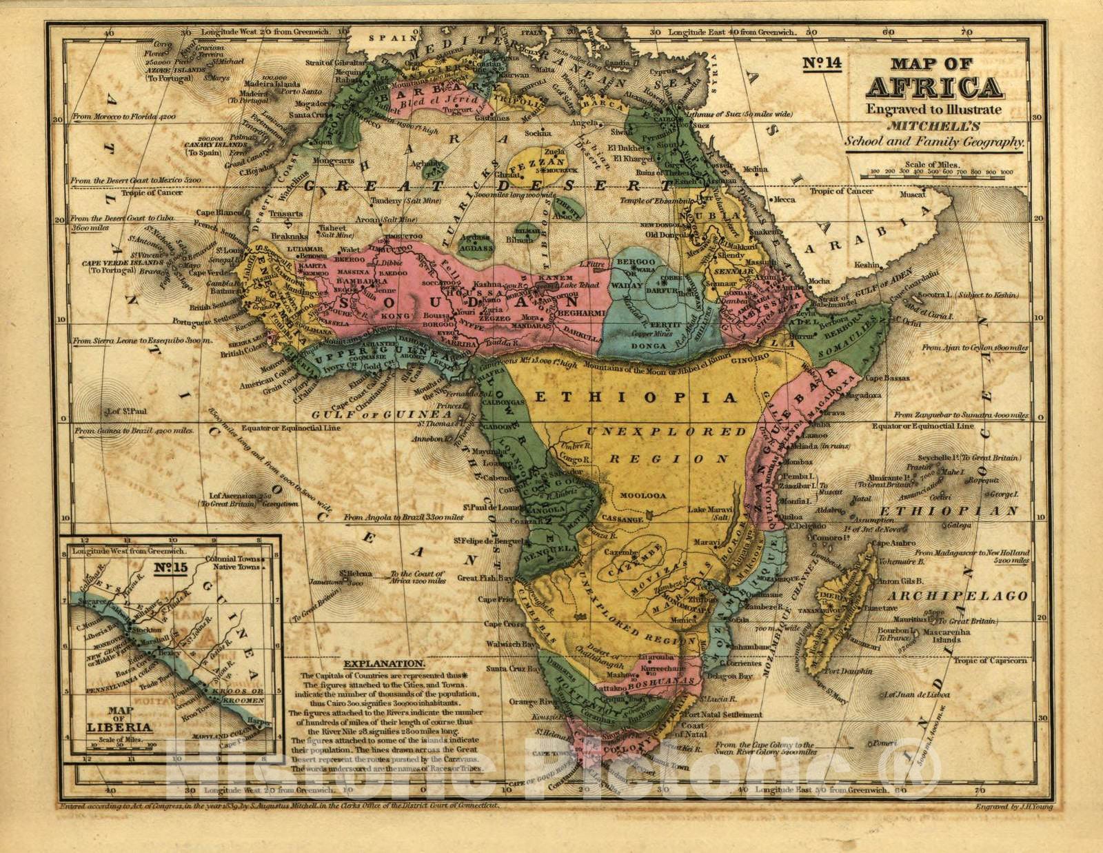 Historic 1839 Map - Mitchell's School Atlas. - Africa