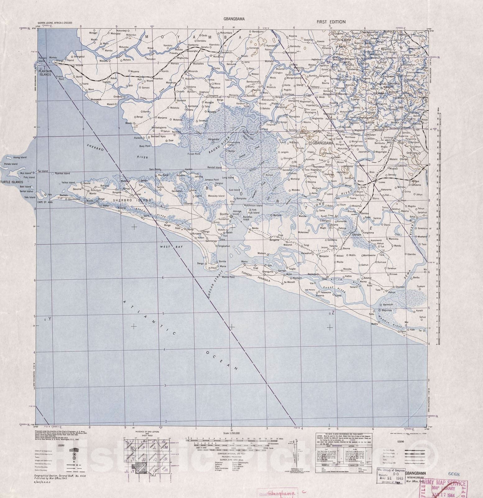 Historic 1942 Map - Sierra Leone, Africa - 1:250,000 - Gbangbama - 1st ed.