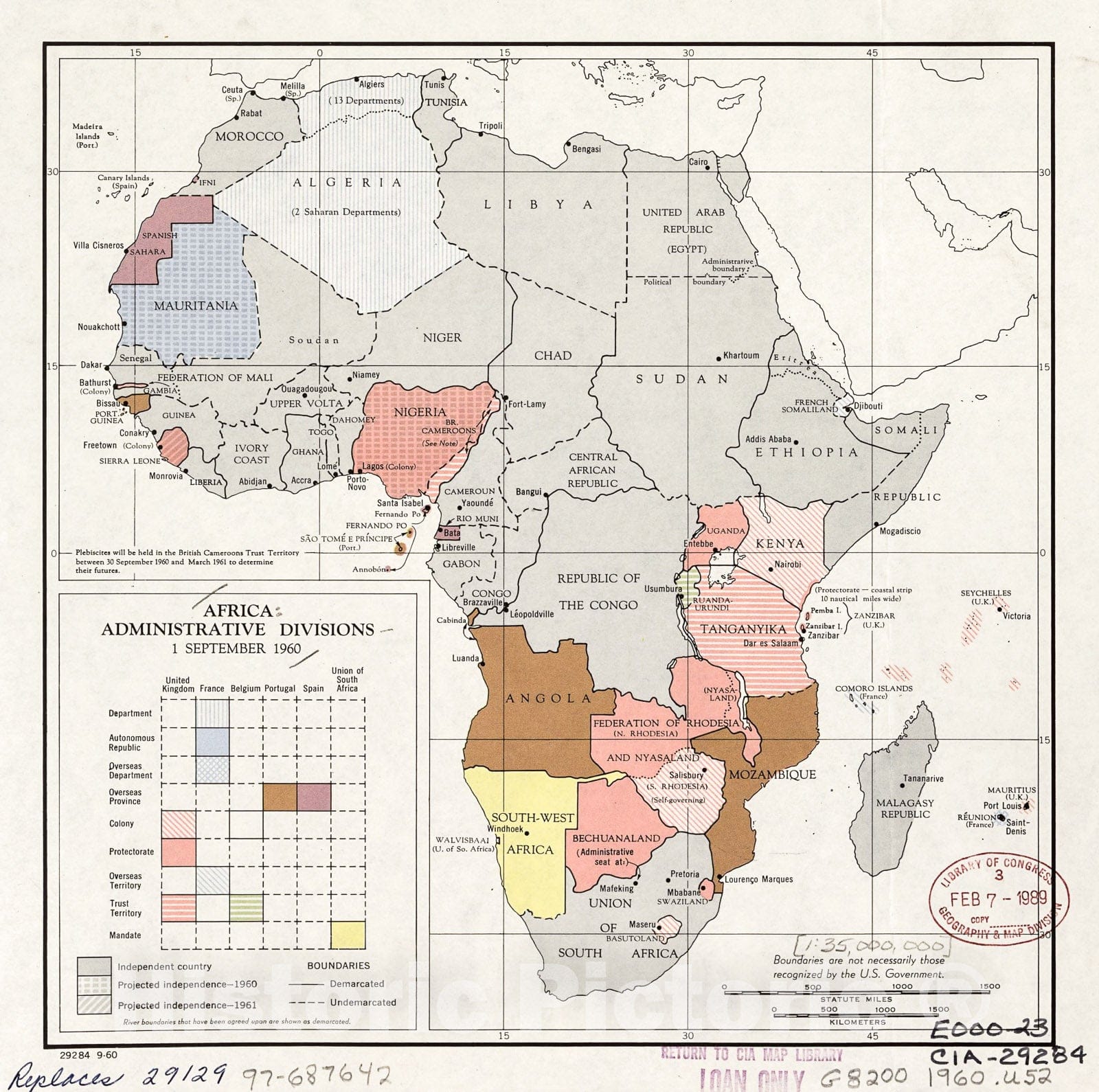 Africa, administrative divisions, 1 September 1960.