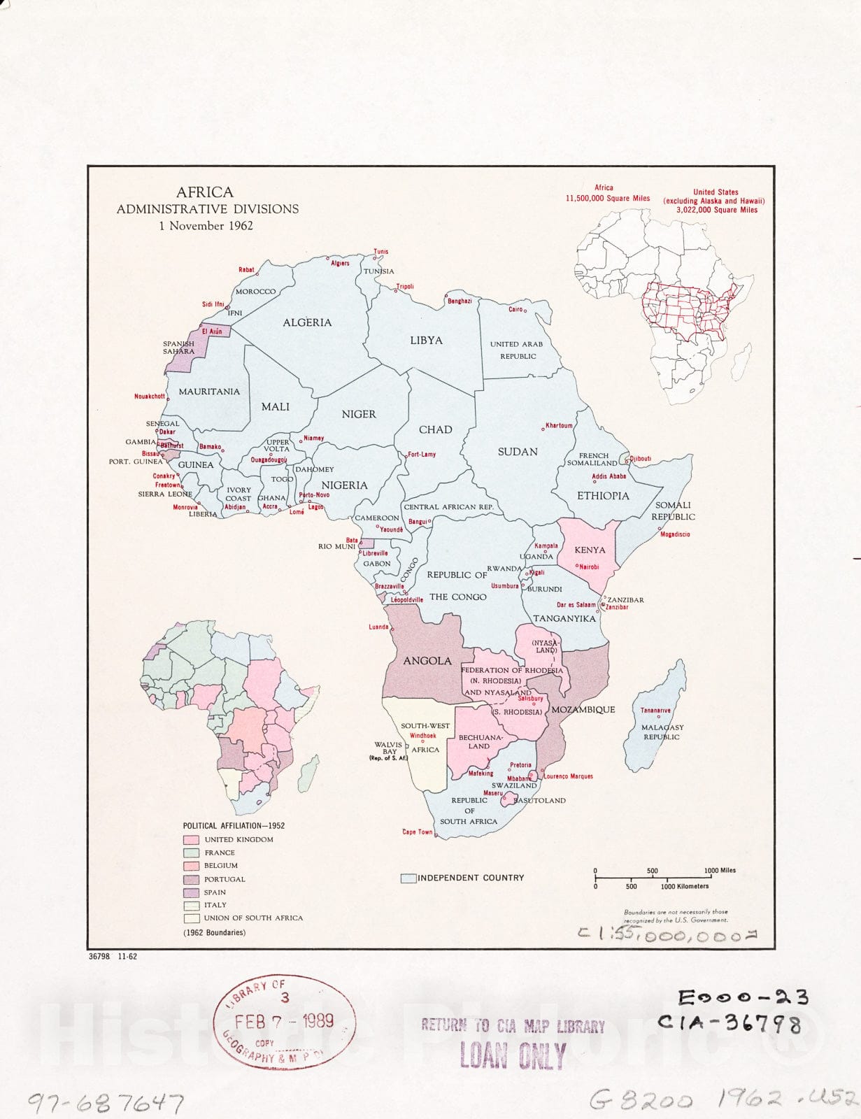 Historic 1962 Map - Africa, Administrative divisions, 1 November 1962.