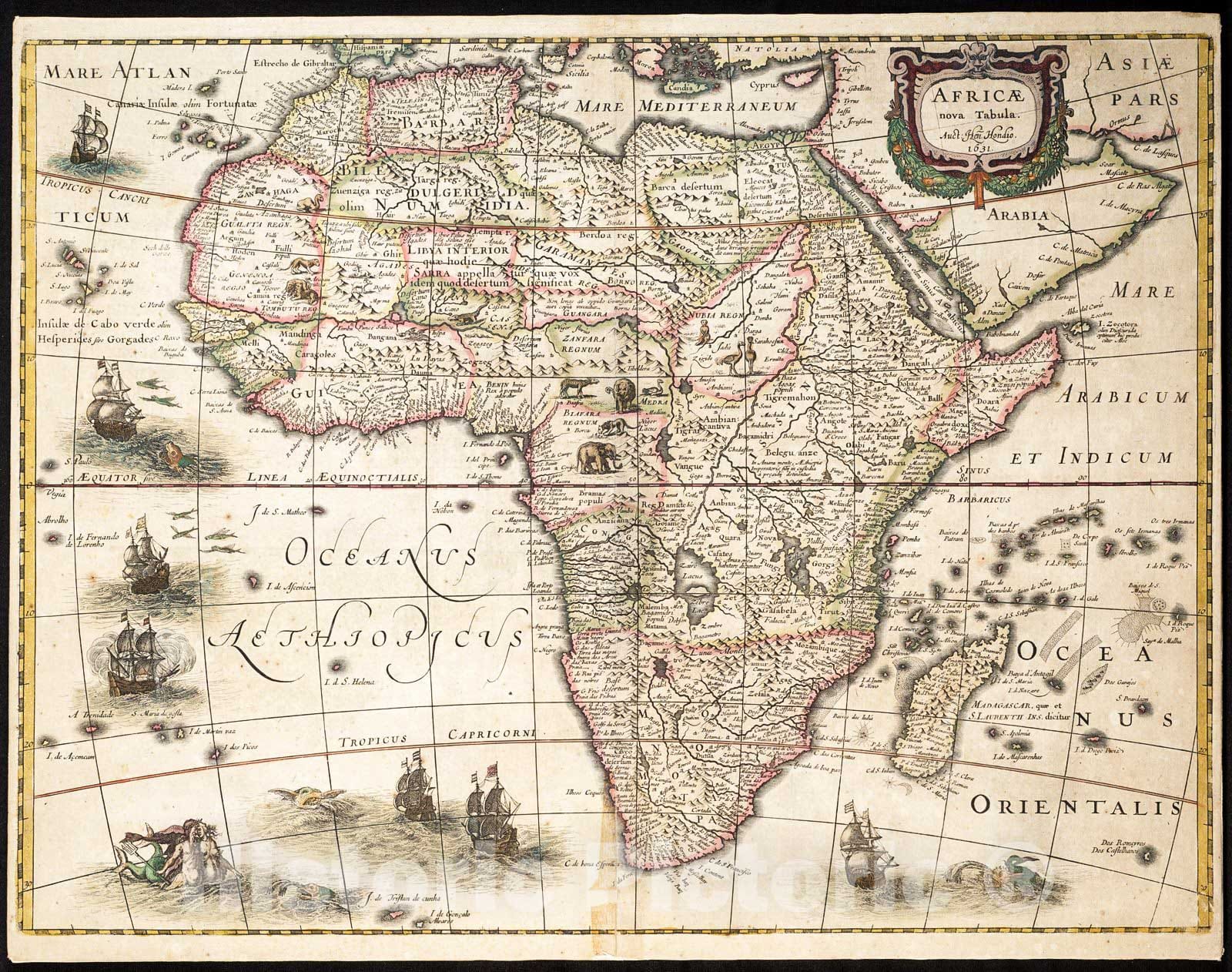 • .Historic Map : 1631 Africae nova tabula, auct. Hen. Hondio. : Vintage Wall Art