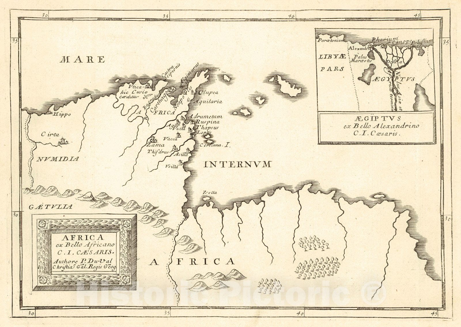 Vintage Map | 1677 Africa ex Bello Africano C.I. Caesaris with inset AEgiptus ex Bello Alexandrino | Du Val, Pierre