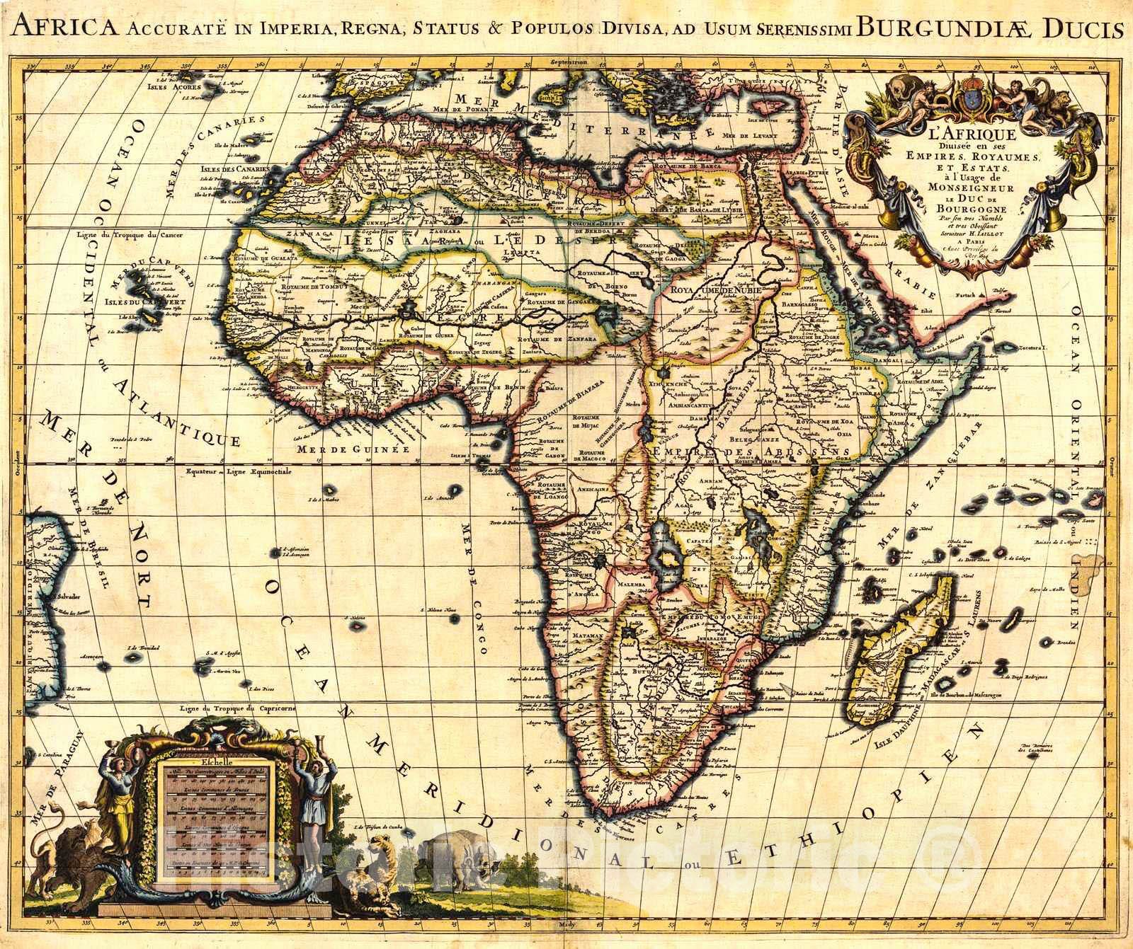 • .Historic Map : 1694 Africa accurate in Imperia, Regna, Status & Populos divisa, ad usum serenissimi Burgundiae Ducis : Vintage Wall Art