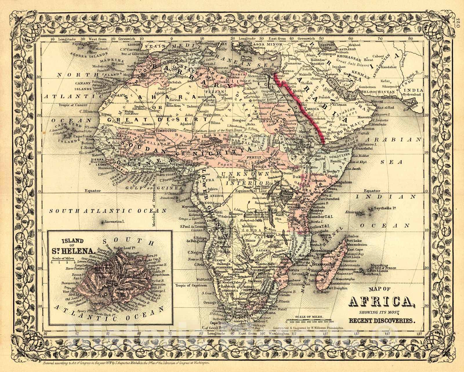 Vintage Map | 1880 Map of Africa showing it's most recent discoveries | Mitchell, S. Augustus