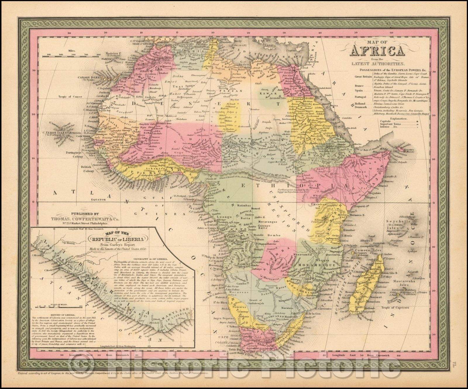 Historic Map - Map of Africa from the Latest Authorities, 1852, Thomas, Cowperthwait & Co. - Vintage Wall Art