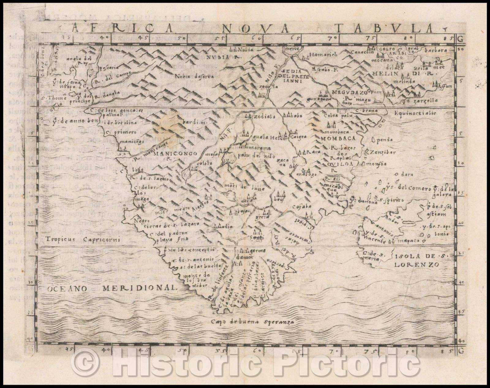 • .Historic Map - Africa Nova Tabula/Africa Nova Tabula, 1548, Giacomo Gastaldi - Vintage Wall Art