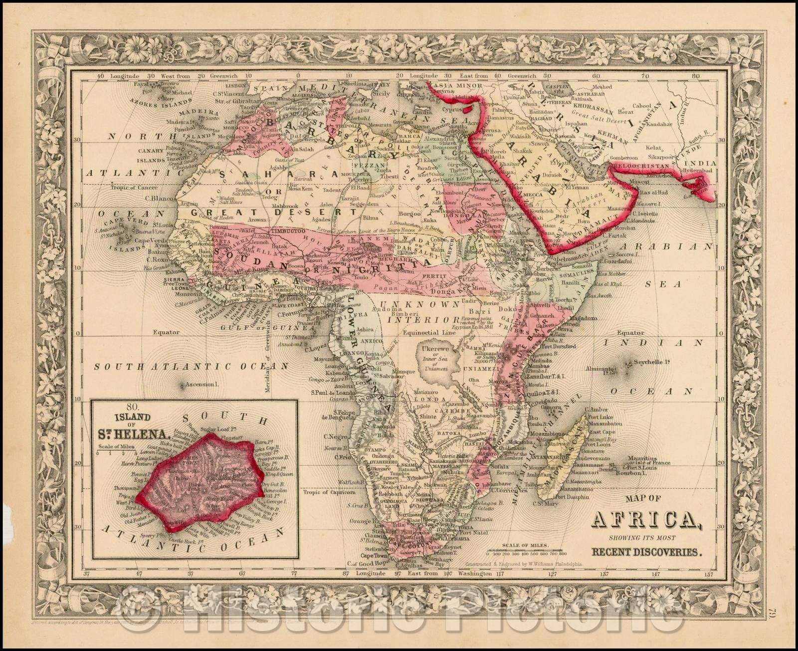 Historic Map - Map of Africa showing Its Most Recent Discoveries, 1865, Samuel Augustus Mitchell Jr. - Vintage Wall Art
