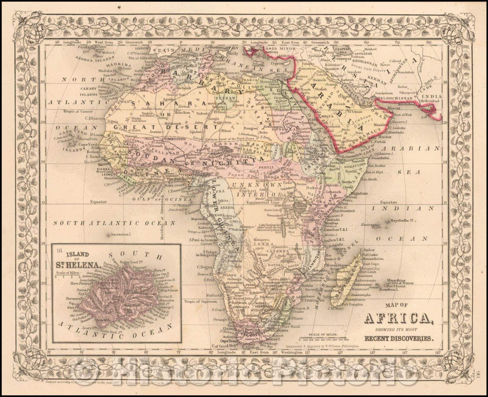 • .Historic Map - Map of Africa showing Its Most Recent Discoveries, 1874, Samuel Augustus Mitchell Jr. v2