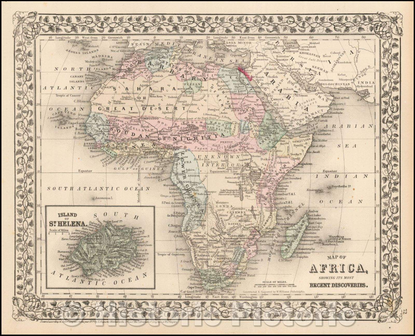 Map of Africa showing Its Most Recent Discoveries, 1874, Samuel Augustus Mitchell Jr.