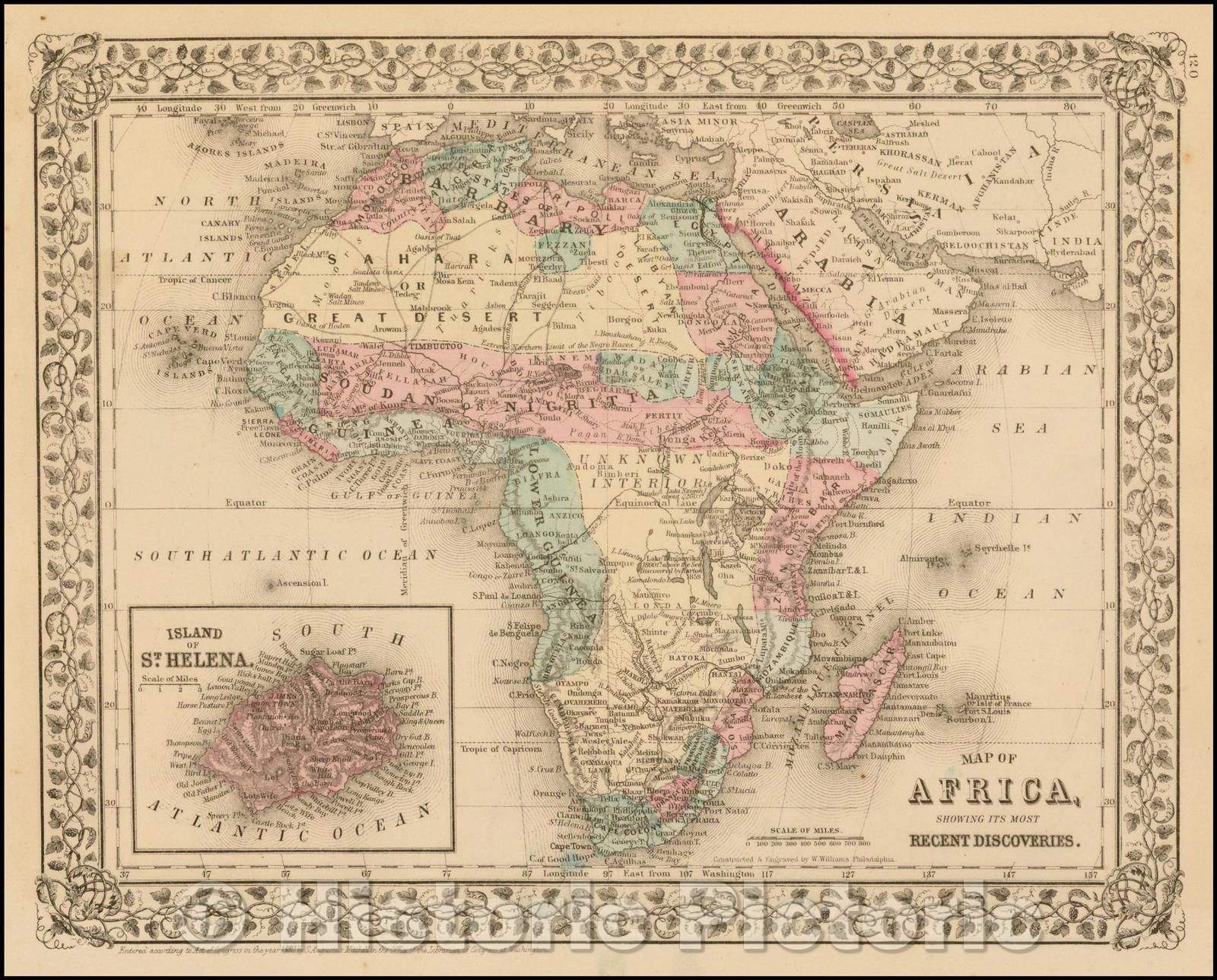 Historic Map - Map of Africa showing Its Most Recent Discoveries, 1880, Samuel Augustus Mitchell Jr. v1