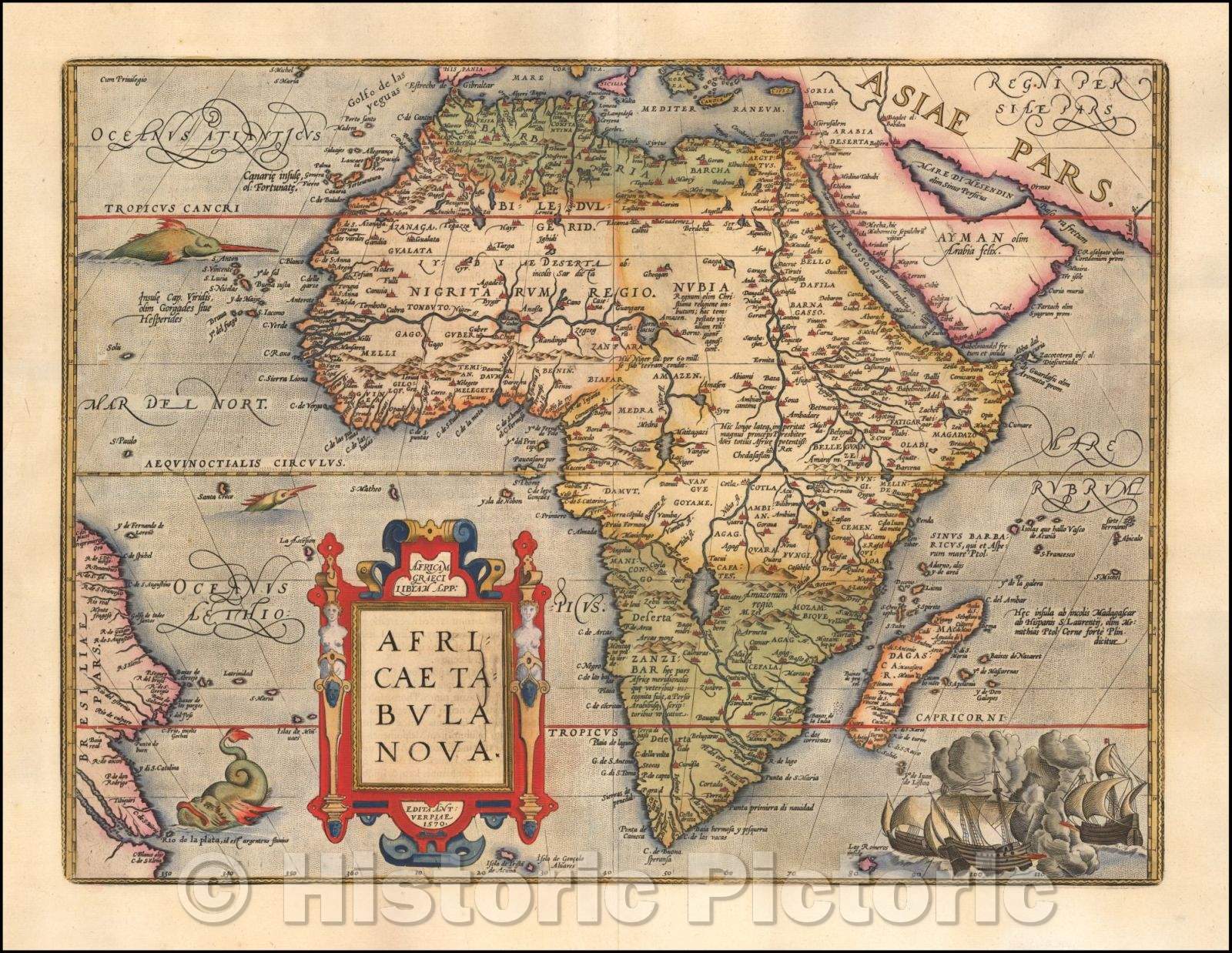 • .Historic Map - Africae Tabula Nova, 1603, Abraham Ortelius - Vintage Wall Art