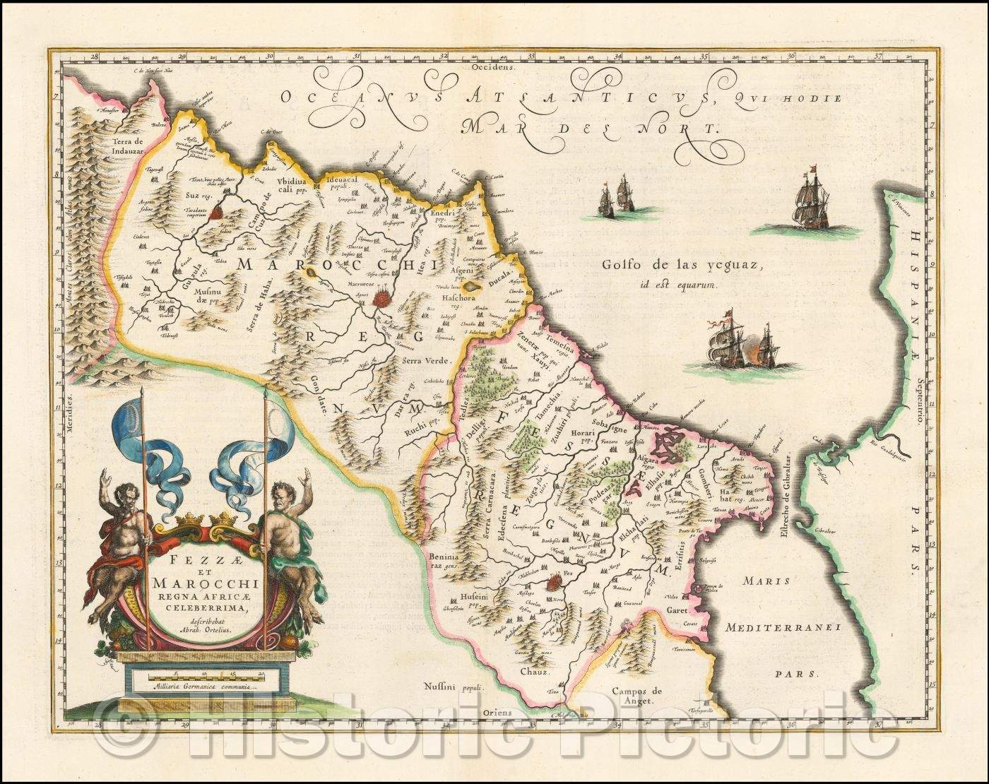 • .Historic Map - Fezzae et Marocchi Regna Africae Celeberrima, 1635, Willem Janszoon Blaeu - Vintage Wall Art