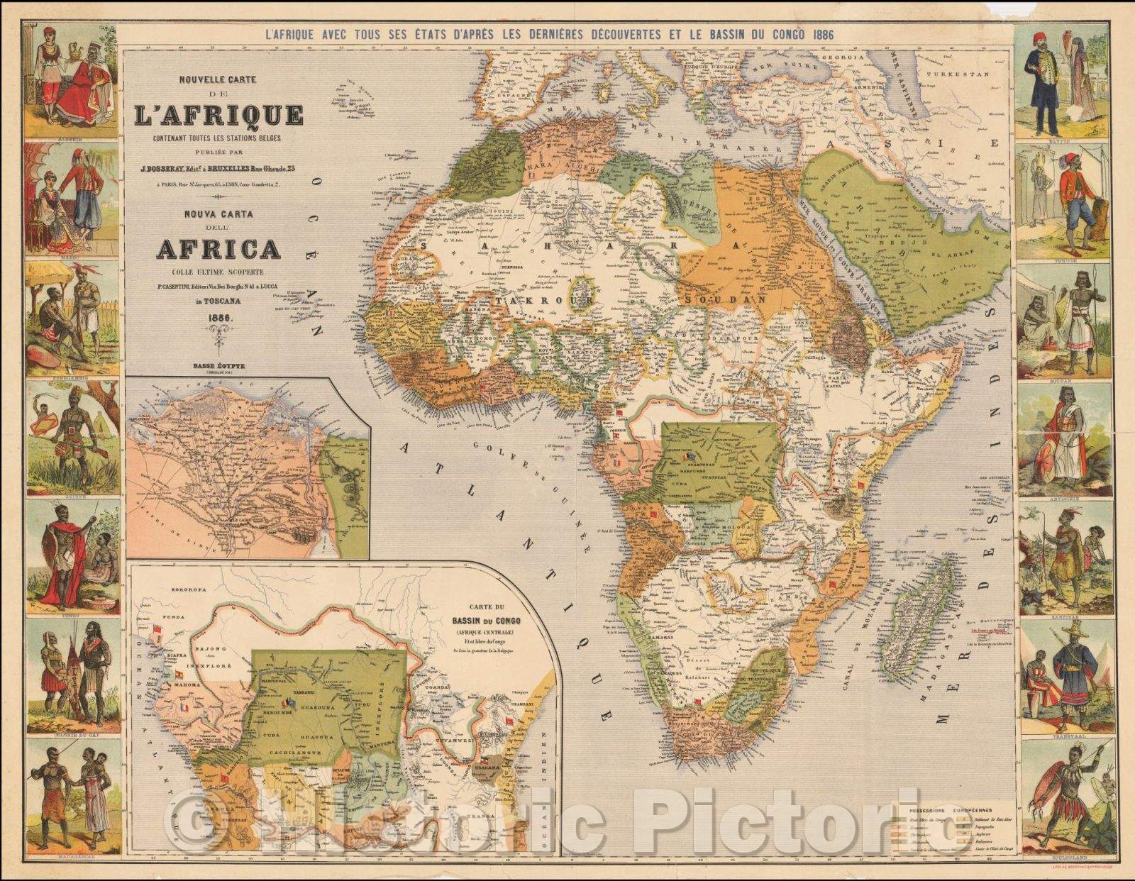 Historic Map - (Free Congo State) Nouvelle Carte de L'Afrique Contenant Toutes Les Stations/Africa, Guinea, Congo, Cape Colony, Madagascar, Zululand, - Vintage Wall Art
