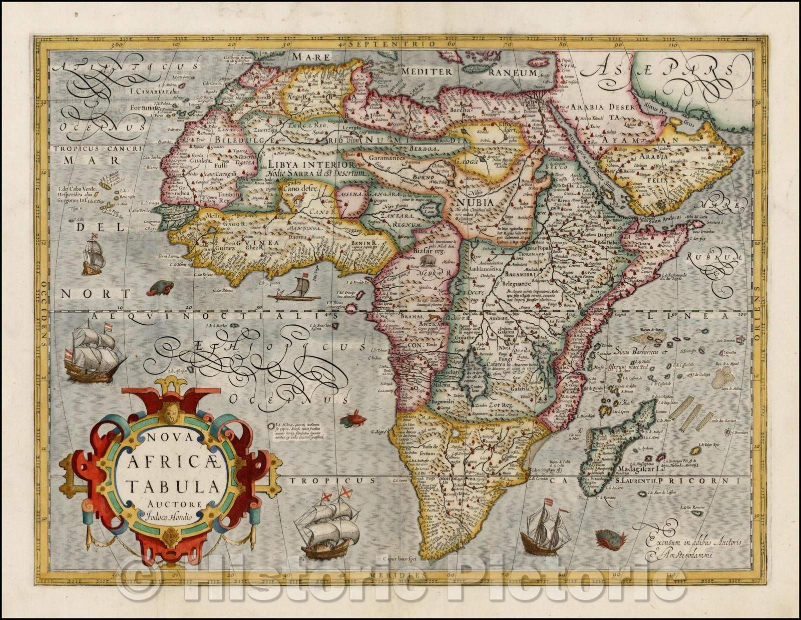 • .Historic Map - Nova Africae Tabula Auctore Jodoco Hondio, 1606, Jodocus Hondius - Vintage Wall Art