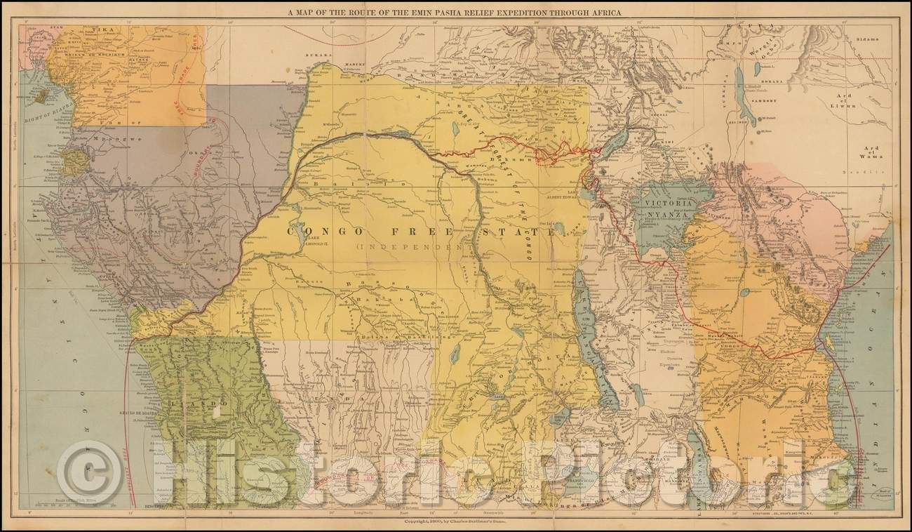 Historic Map - Route of the Emin Pasha Relief Expedition Through Africa, 1890, Charles Scribner & Co. - Vintage Wall Art