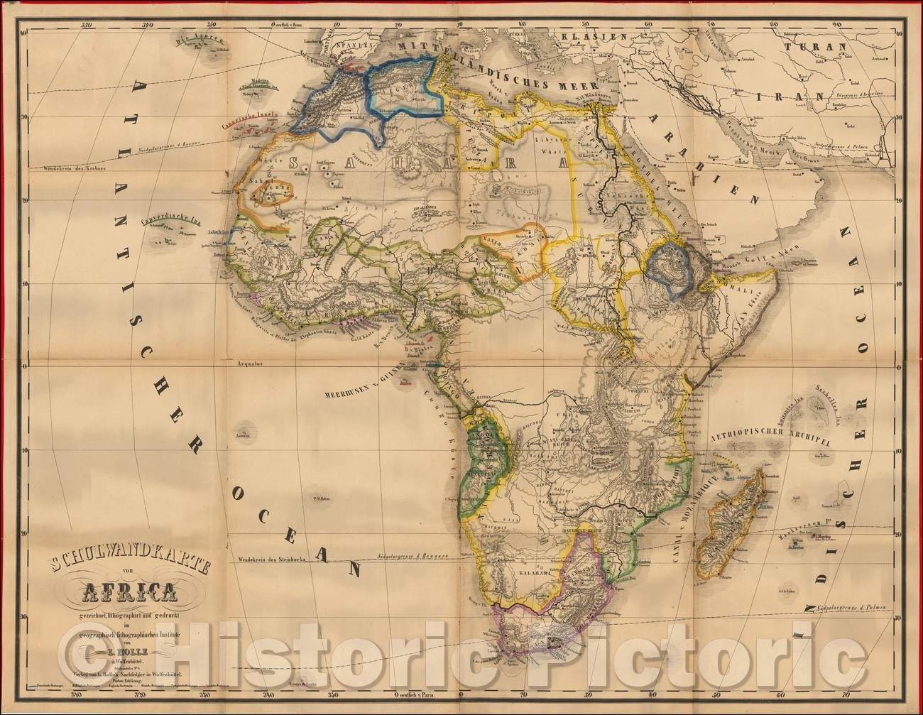 Historic Map - Schulwandkarte von Africa gezeichnet und lithographirt von L. Holle/Wall Map of Africa, published by Leinhert Holle in Wolfenbuttel, 1855 - Vintage Wall Art