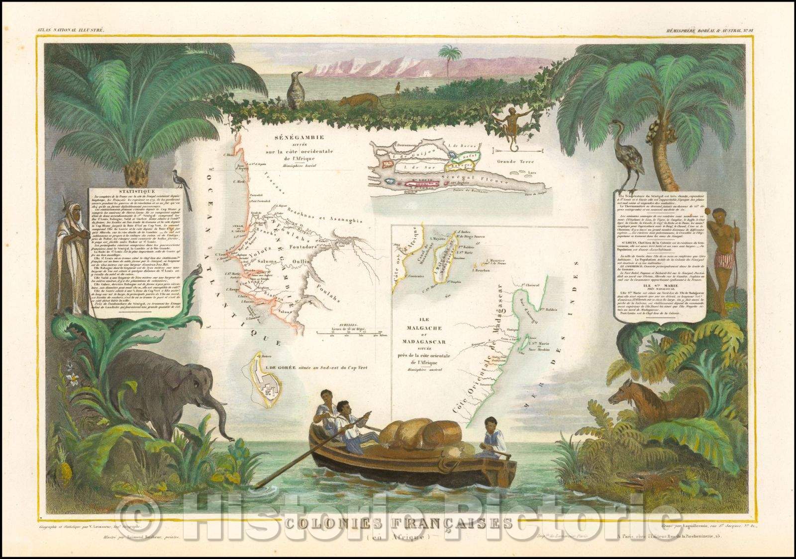 Historic Map - Senegal, Isle de Goree, and Madagascar] Co/The French Colonies in Africa, including Senegal, Isle de Goree, and Madagascar, 1850 - Vintage Wall Art