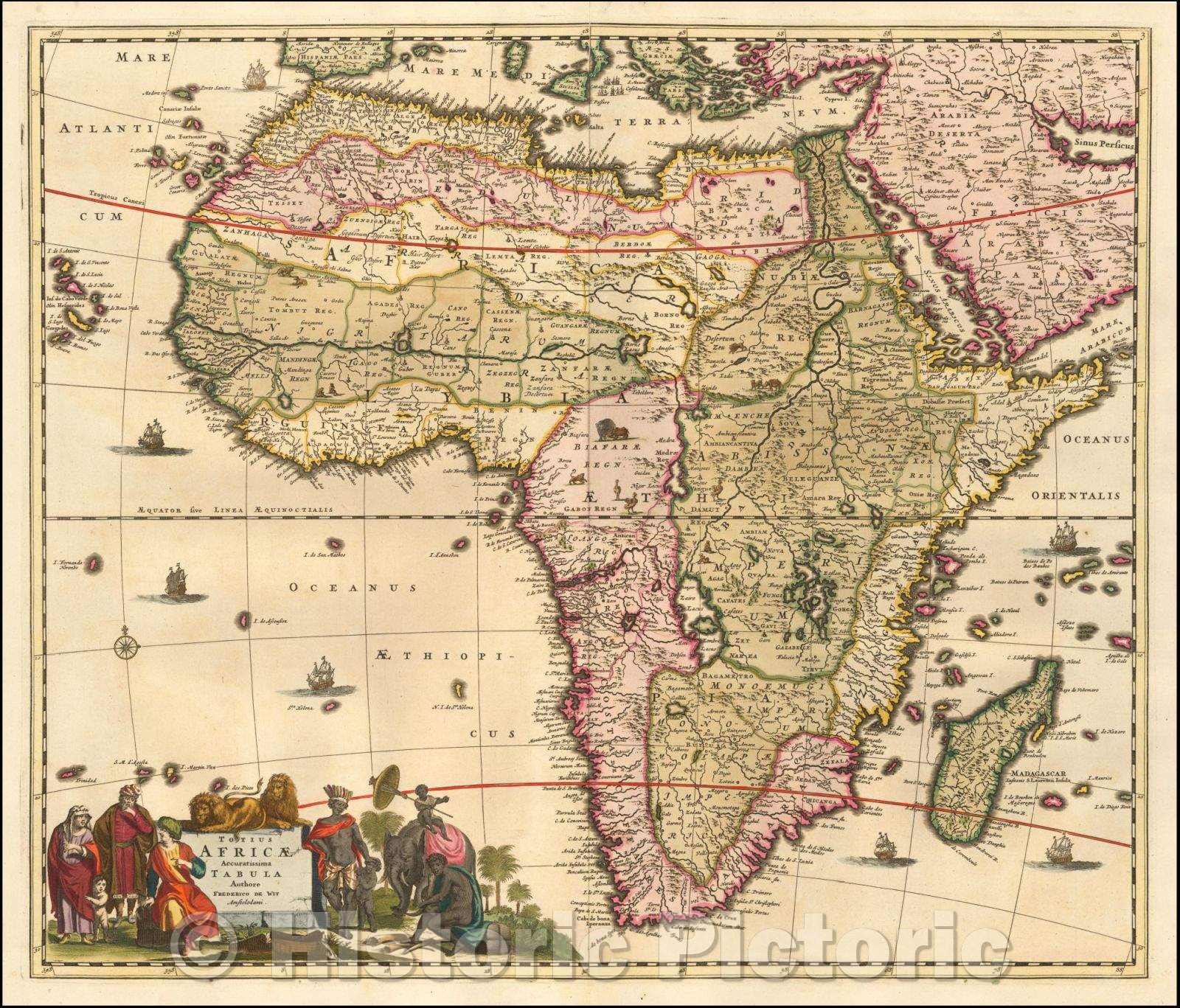Historic Map - Totius Africae Accuratissima Tabula, 1680, Frederick De Wit - Vintage Wall Art