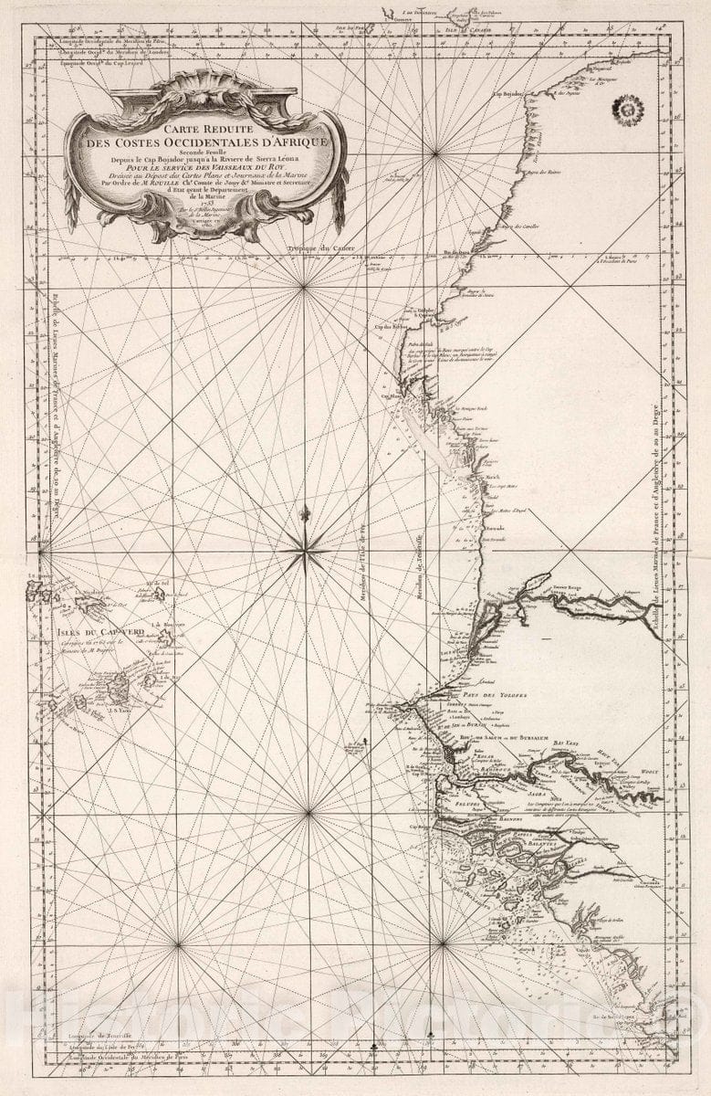 Historic Map : Western Sahara, West Africa Carte Reduite des Costes Occidentales d'Afrique, Second Feuille. , Vintage Wall Art