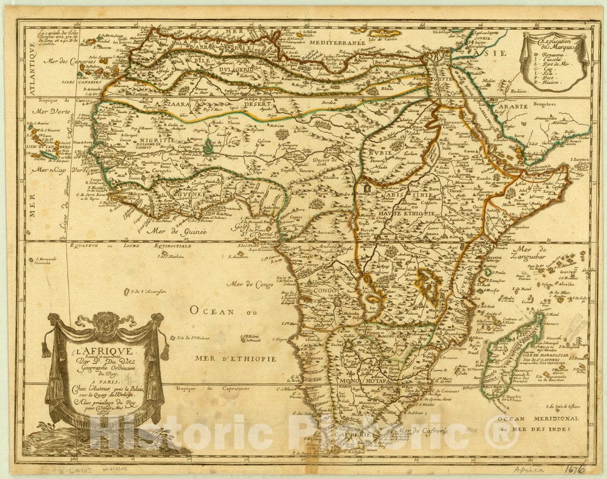• Map : Africa 1676, L'Afrique , Antique Vintage Reproduction