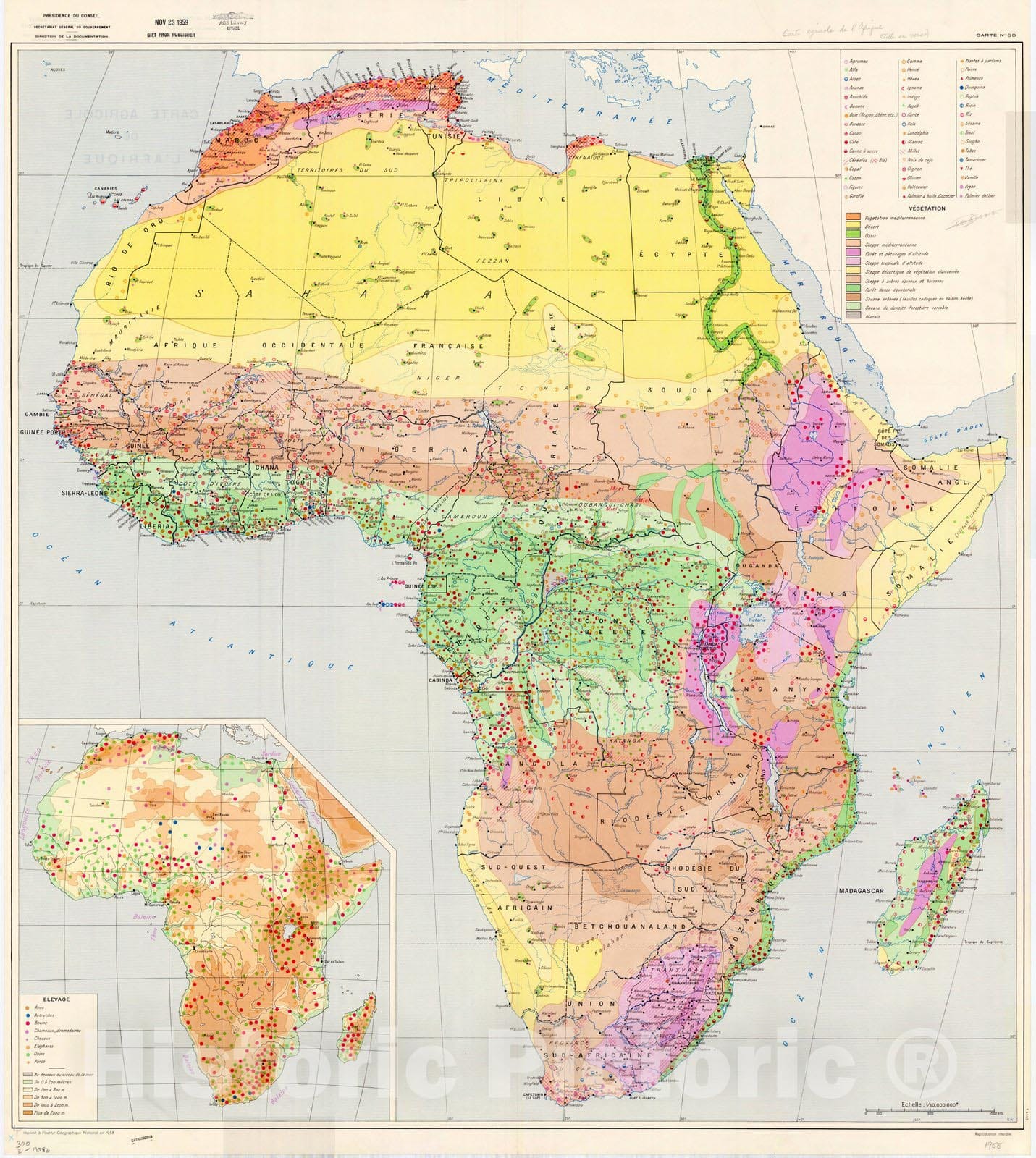 Map : Africa 1958, Carte agricole de l'Afrique, Antique Vintage Reproduction