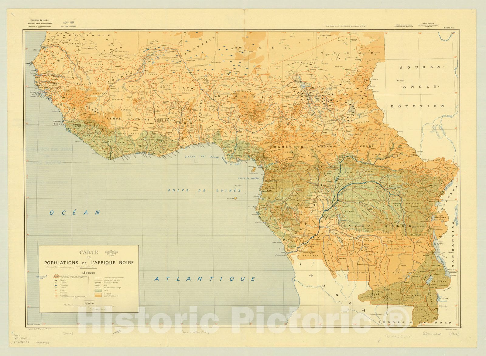 • .Map : Africa 1962, Carte des populations de l'Afrique Noire , Antique Vintage Reproduction