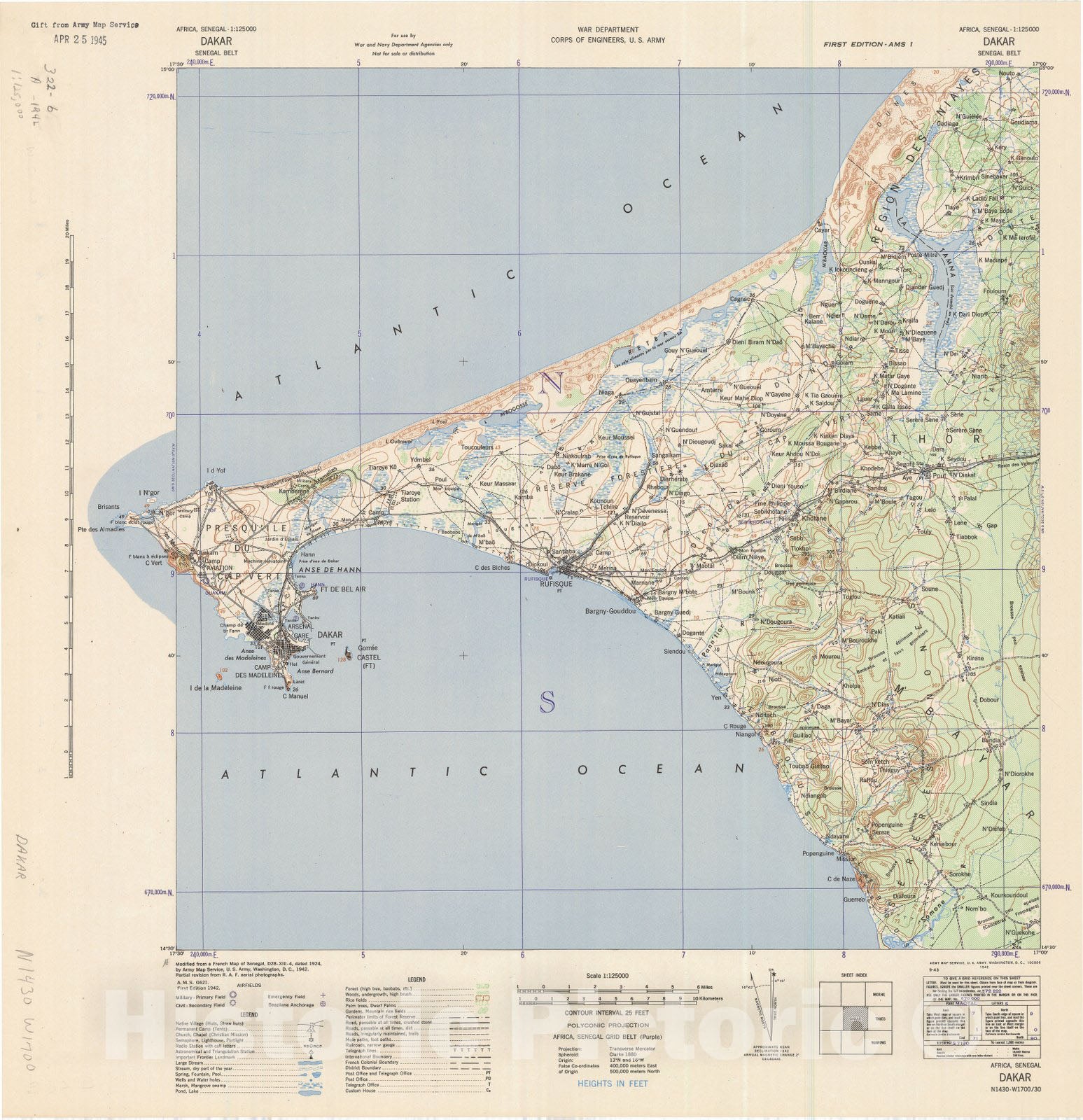 Map : Dakar, Senegal 1942, Africa, Senegal 1:125000 Dakar, Senegal Belt , Antique Vintage Reproduction