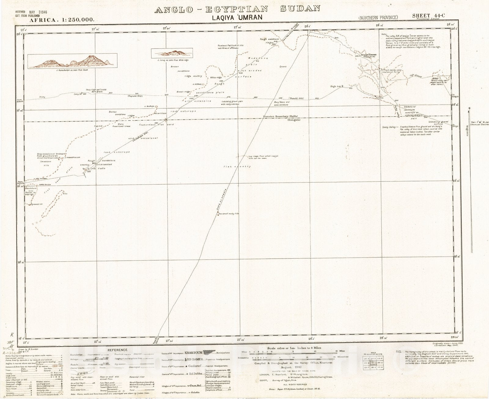 Map : Laqiya 'Umran, Anglo-Egyptian Sudan , Africa 1:250,000, Anglo-Egyptian Sudan, Laqiya 'Umran, sheet 44-C , Antique Vintage Reproduction