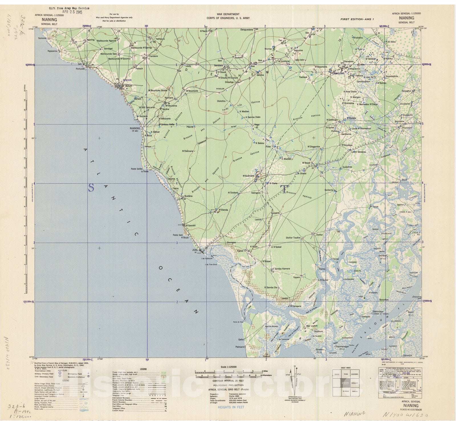 Africa, Senegal 1:125000 Nianing, Senegal Belt / War Department, Corps of Engineers U.S. Army