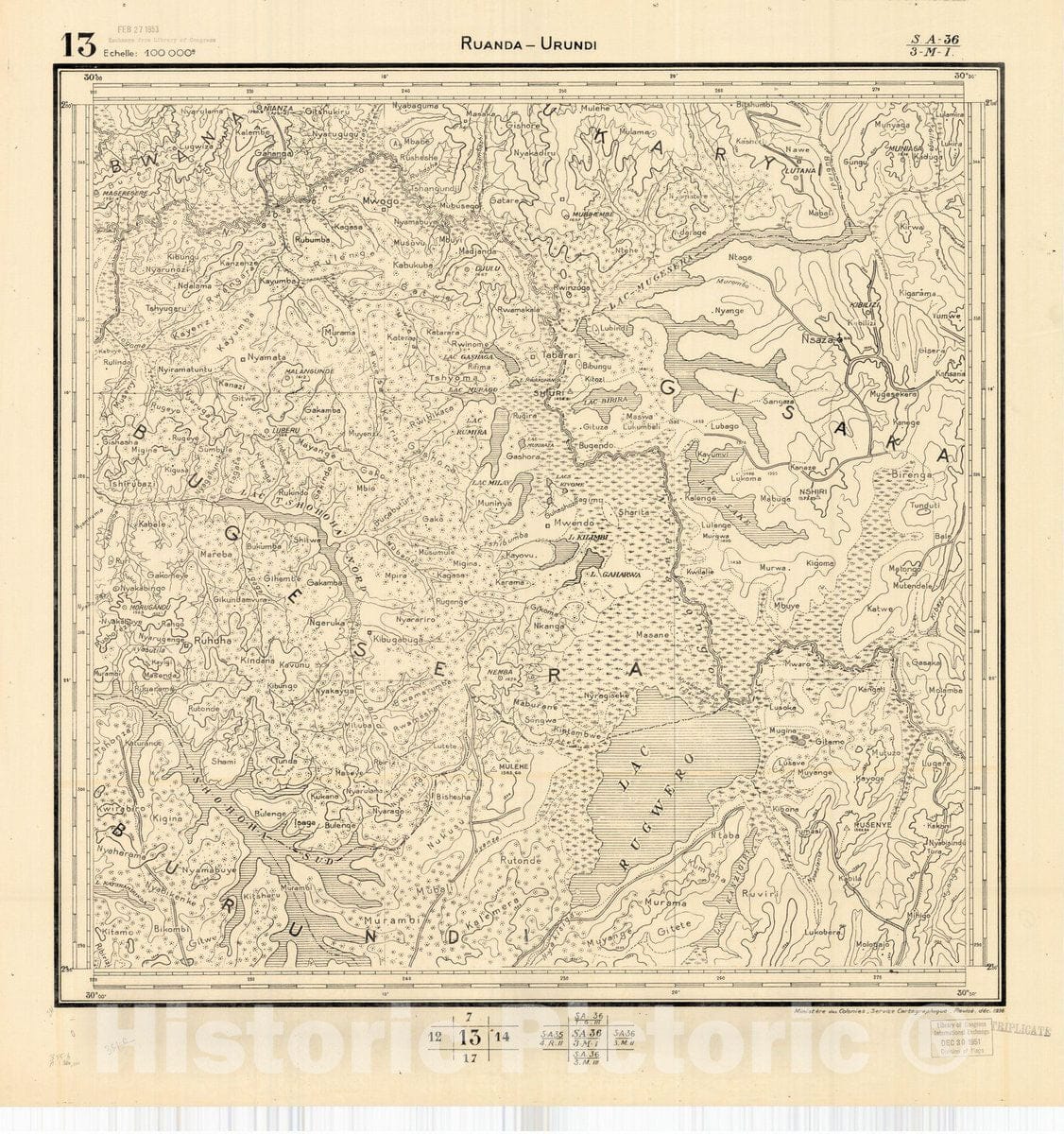 Belgian Congo, Africa Ruanda-Urundi District scale 1:100,000 / published by Ministere des Colonies-Service Cartographique