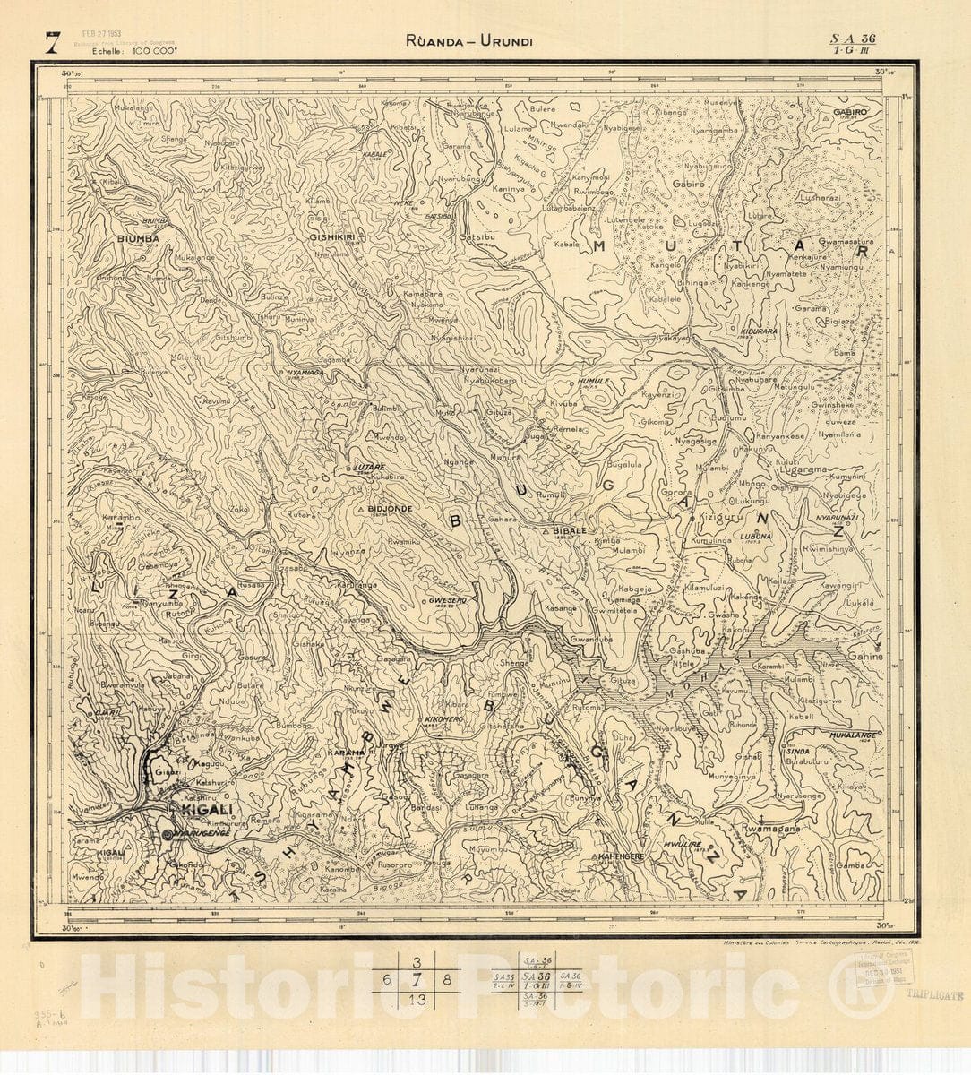 Map : Ruanda-Urundi, Africa 1948 29, Belgian Congo, Africa Ruanda-Urundi District scale 1:100,000 , Antique Vintage Reproduction