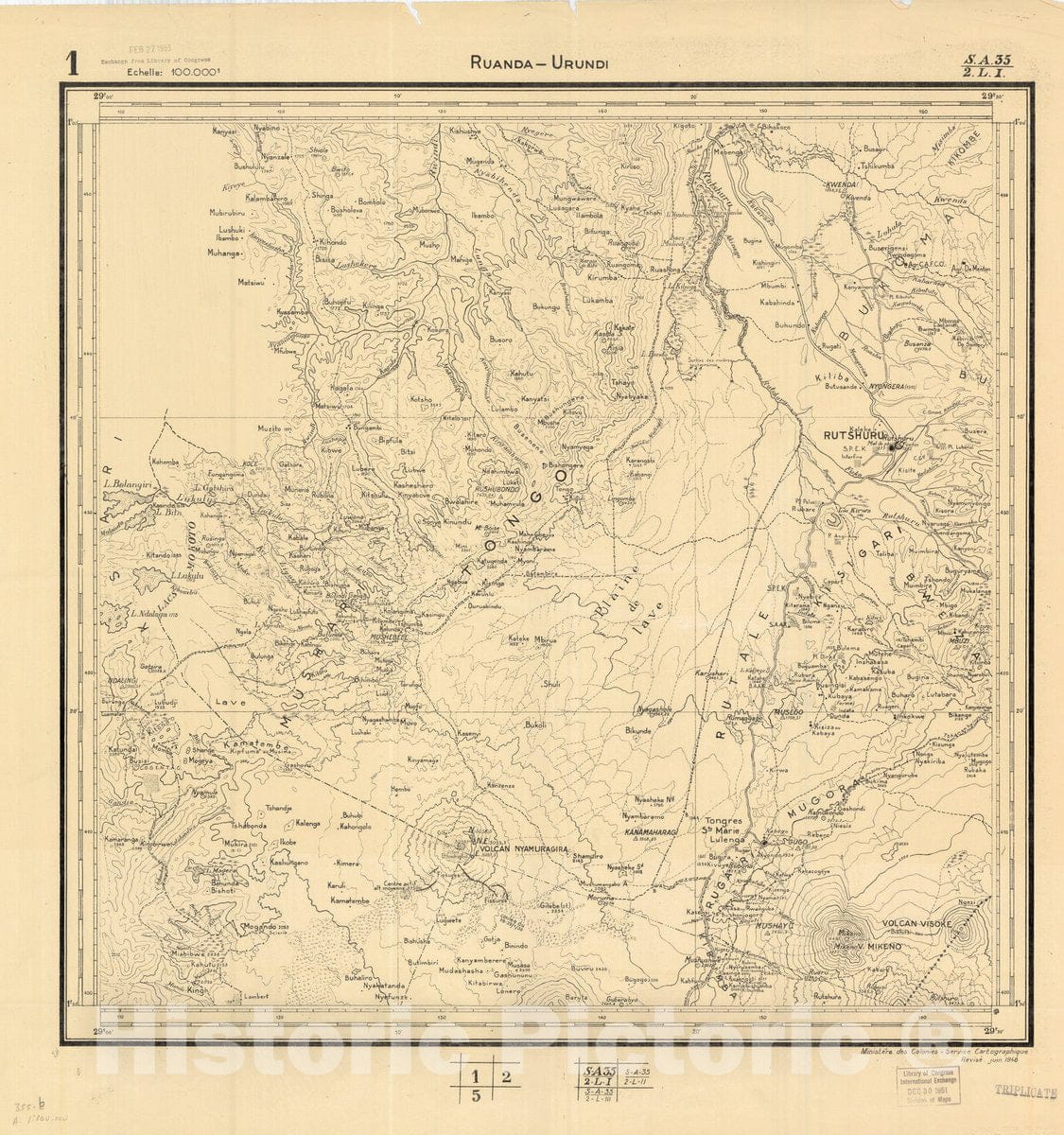 Belgian Congo, Africa Ruanda-Urundi District scale 1:100,000 / published by Ministere des Colonies-Service Cartographique