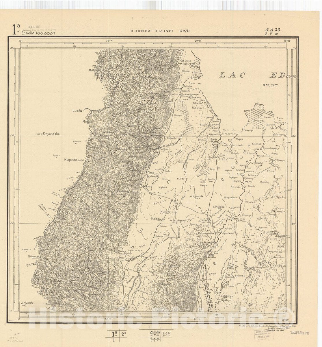 Belgian Congo, Africa Ruanda-Urundi District scale 1:100,000 / published by Ministere des Colonies-Service Cartographique