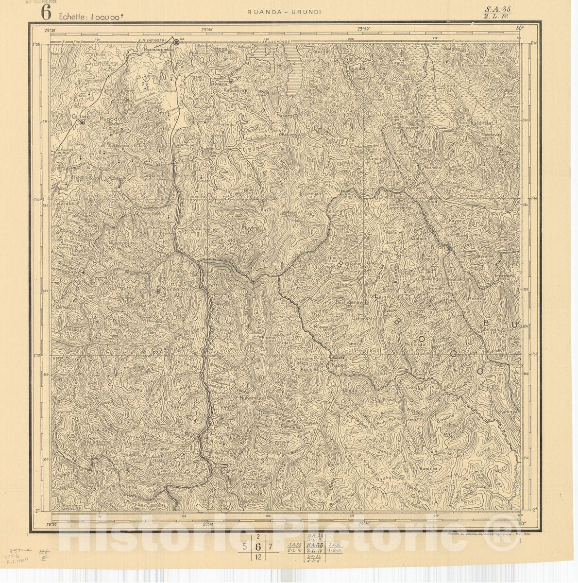 Map : Ruanda-Urundi, Africa 1948 6, Belgian Congo, Africa Ruanda-Urundi District scale 1:100,000 , Antique Vintage Reproduction