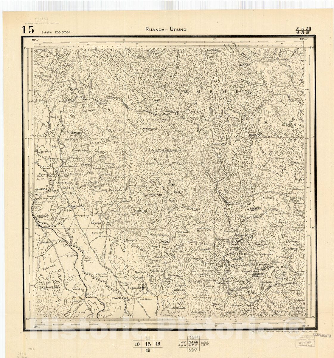 Map : Ruanda-Urundi, Africa 1948 11, Belgian Congo, Africa Ruanda-Urundi District scale 1:100,000 , Antique Vintage Reproduction
