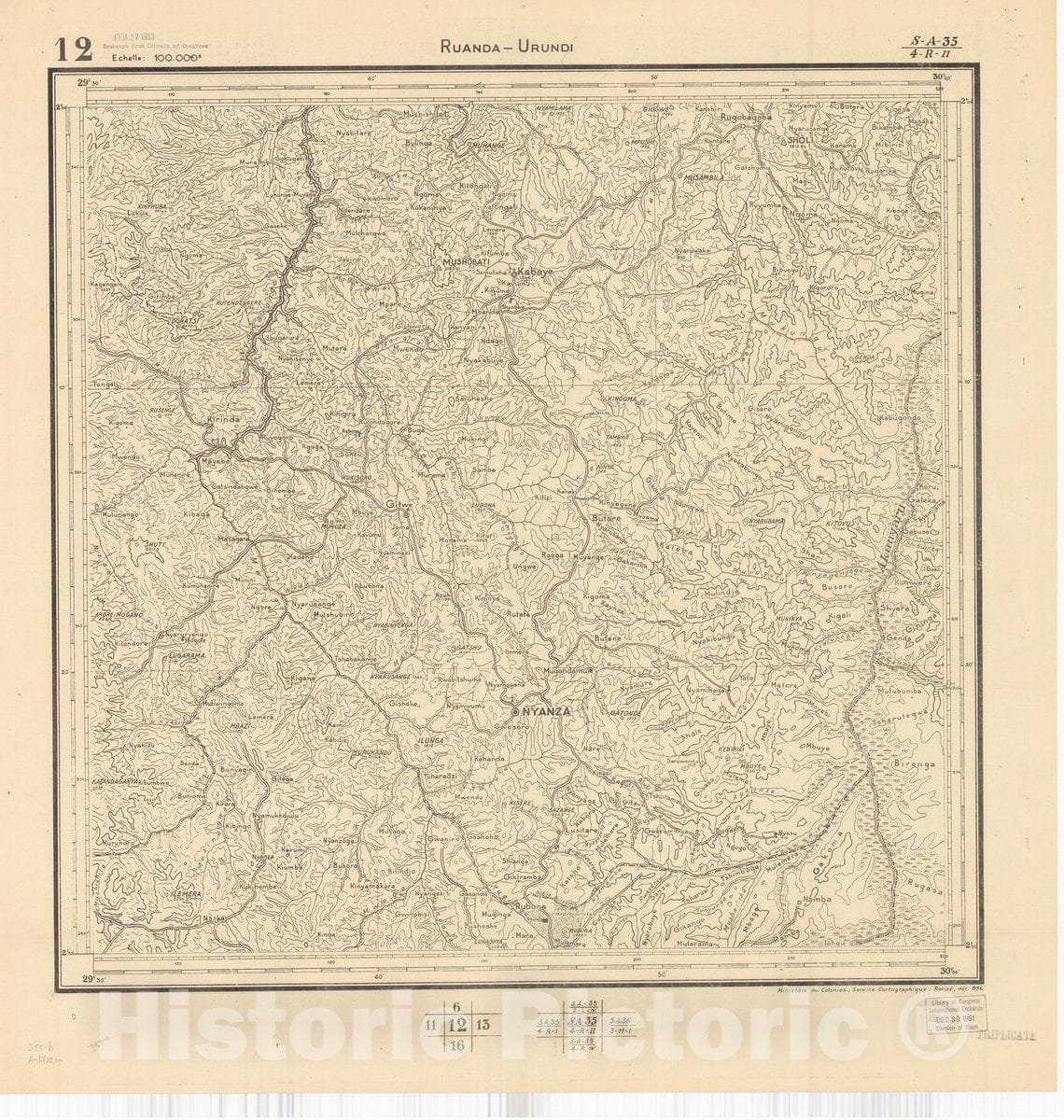Belgian Congo, Africa Ruanda-Urundi District scale 1:100,000 / published by Ministere des Colonies-Service Cartographique