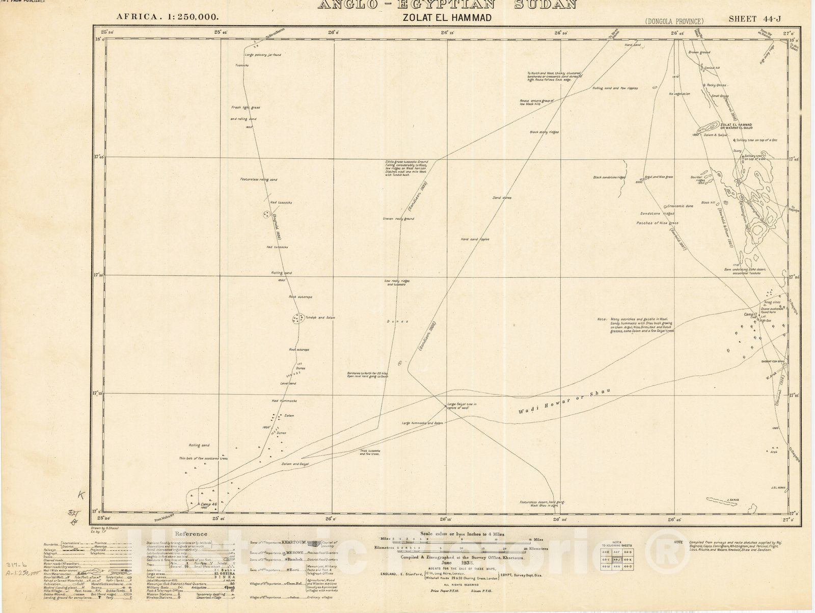 Map : Zolat el Hammad, Anglo-Egyptian Sudan 1933, Africa 1:250,000, Anglo-Egyptian Sudan, Zolat el Hammad sheet 44-J , Antique Vintage Reproduction