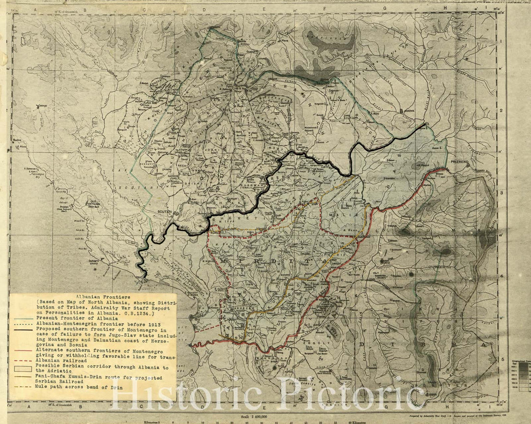 Historic 1915 Map - Proposed Boundary Between Greece and Albania and Population Composition of South Central Yugoslavia and Northern Albania.