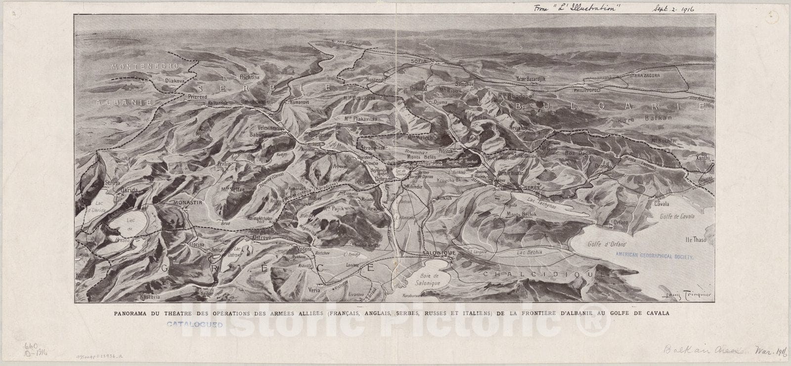 Panorama du theatre des operations des armees alliees (Francais, Anglais, Serbes, Russes et Italiens) de la frontiere d'Albanie au Golfe de Cavala / Louis Trinquier
