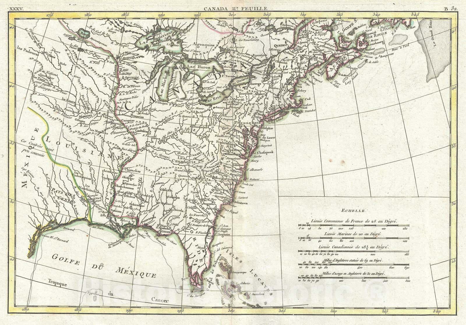 • Historic Map : Louisiana and The British Colonies in North America, Bonne, 1778, Vintage Wall Art