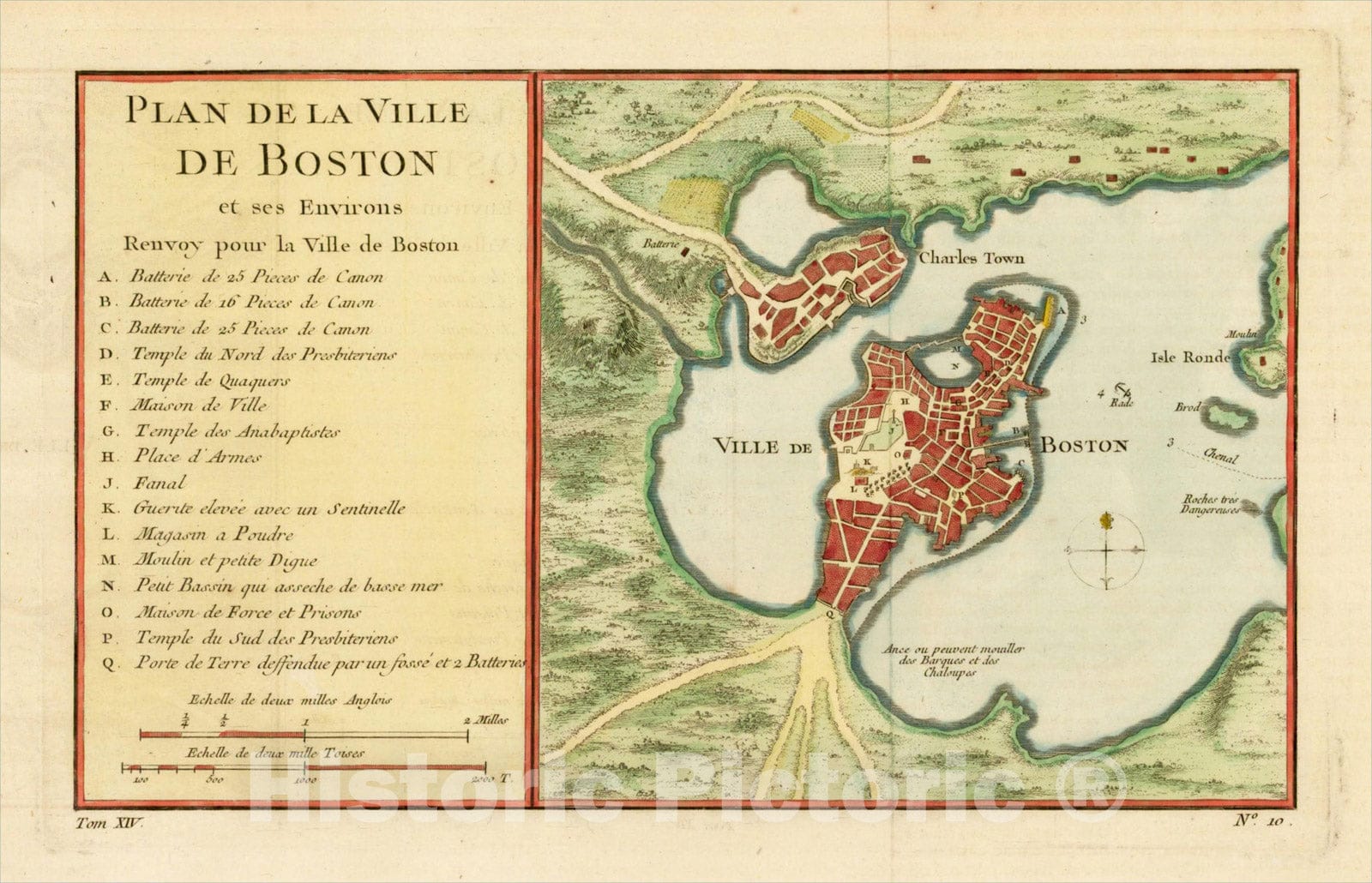 Historic Map : Plan De La Ville De Boston et ses Environs, 1764, Jacques Nicolas Bellin, v1, Vintage Wall Art