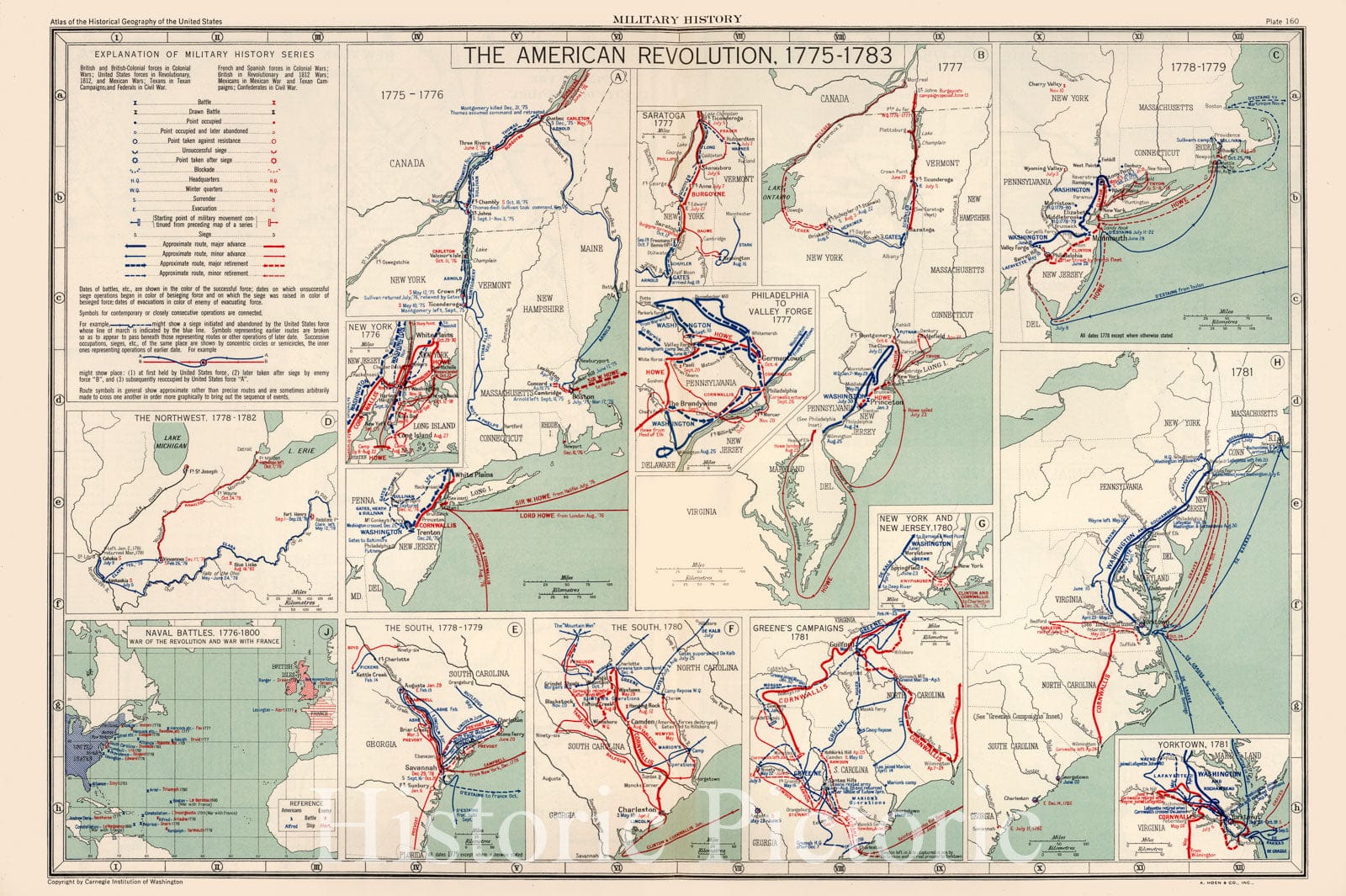 • .Historic Map : Plate 160. Military History. American Revolution, 1775 - 1800., 1932, Vintage Wall Decor