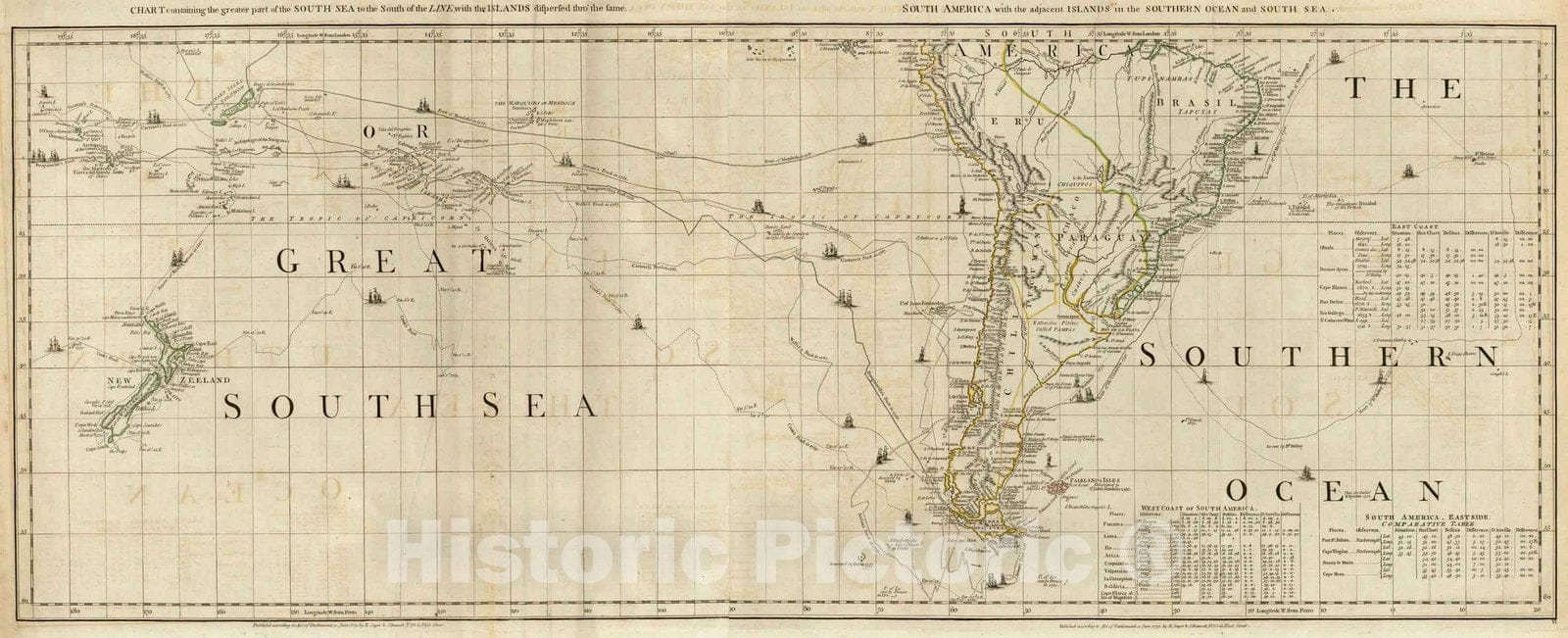 Historic Wall Map : Chart containing the greater part of the South Sea to the South of the Line. 1776 - Vintage Wall Art