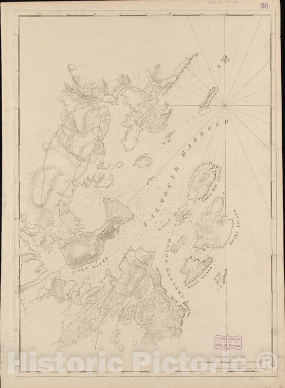 Historical Map, 1770-1779 Falmouth Harbour, Vintage Wall Art