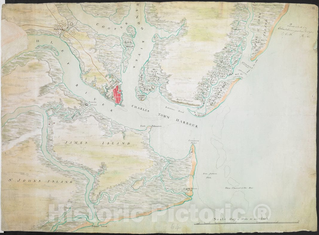 Historical Map, 1781 [Charles Town Harbour & Adjacent Islands, Country, Rivers et Cetera], Vintage Wall Art