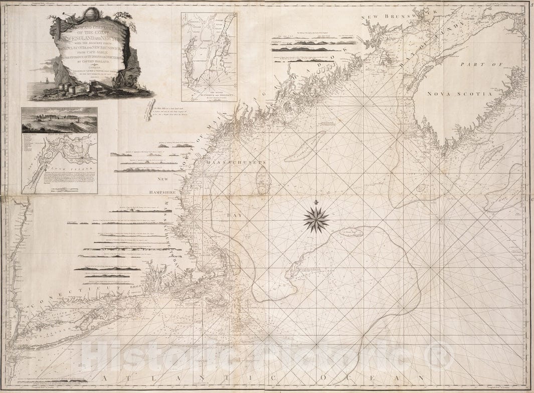 Historical Map, 1794 A New and Correct Chart of The Coast of New England and New York with The Adjacent Parts of Nova Scotia and New Brunswick from Cape Sable, Vintage Wall Art