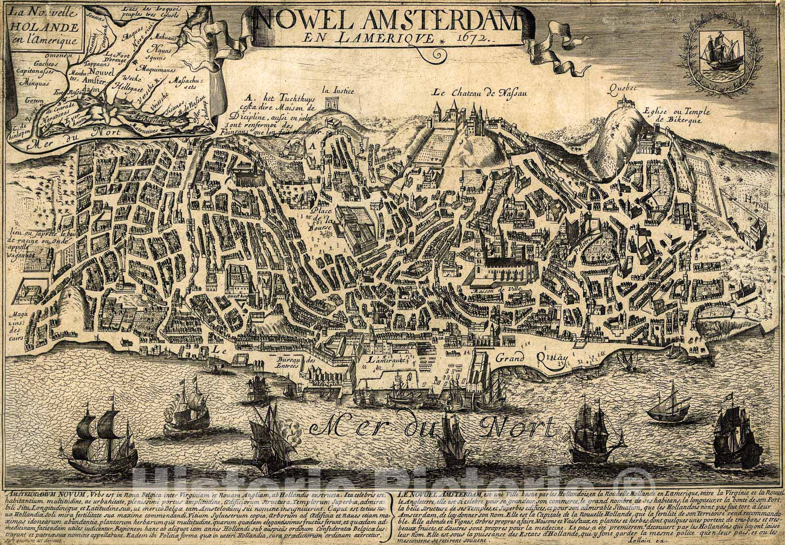 Historic 1672 Map - Nowel Amsterdam en Lameriqve : 1672