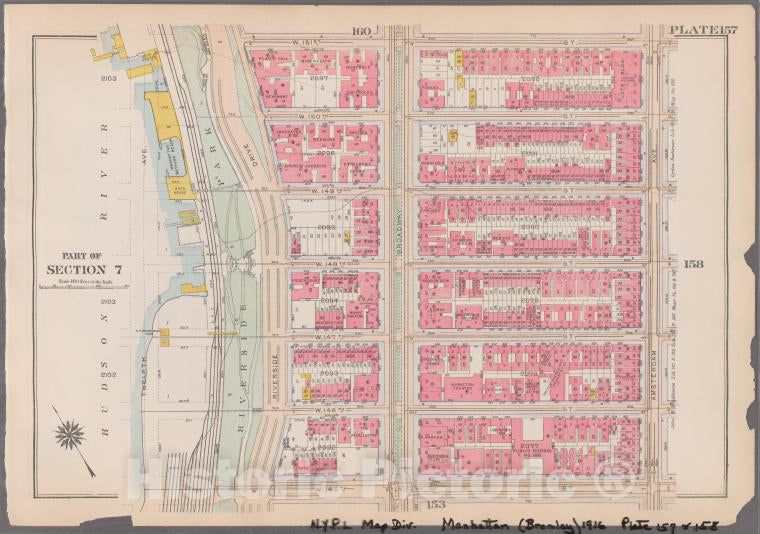 Historic 1916 Map - Plate 157: [Bounded By W. 151St Street, Amsterdam Avenue, W. 145